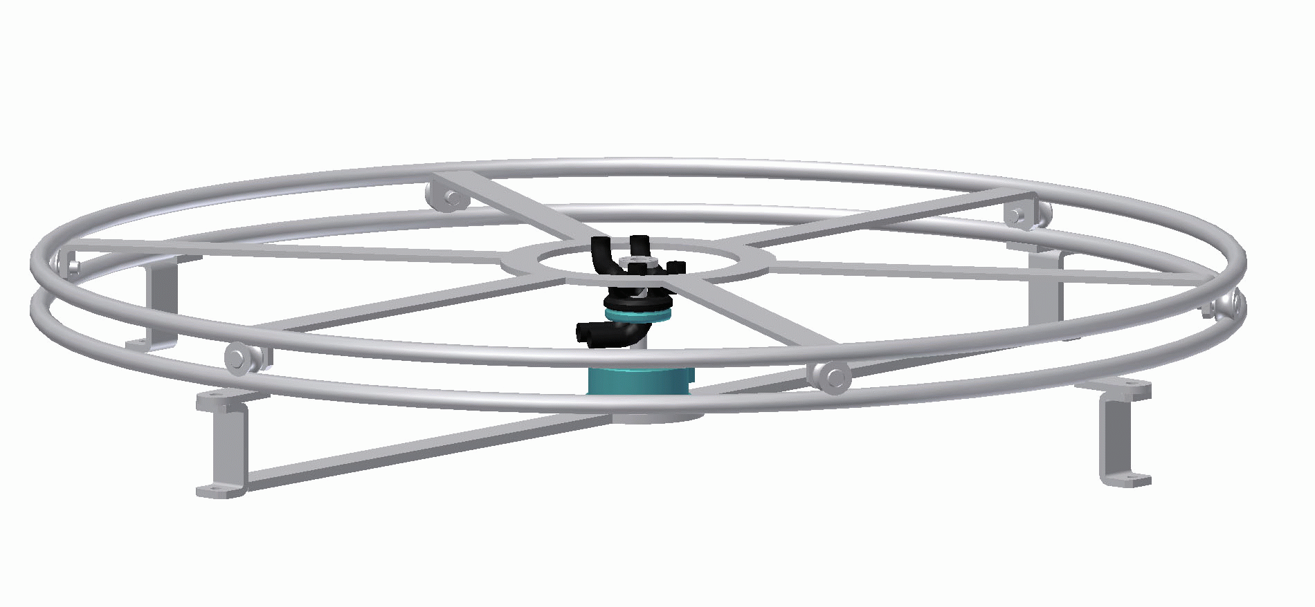 Die solarthermische Konstruktion besteht aus einem kreisrunden, drehbaren Parabol- linearfokussierenden Kollektortyp. In der Mitte jeder einzelnen Parabolrinne sind längliche Absorberrohre angeordnet, die parallel im Bereich der Fokallinie verlaufen. Das einfallende Sonnenlicht wird von den parabolisch geformten Hohlspiegel -- in Form einer Brennlinie -- auf die Absorber- oberfläche der Rohre konzentriert. Als Wärmeträgermedium dient Wasser. Die Absorber- rohre stellen aufgrund der runden Konstruktion des Solarkollektors zwei symetrisch, geschlossene Wärmekreisläufe dar. Der Zu- und Ablauf des Wassers wird über eine flexible, mechanische Vorrichtung, die unterhalb des Kollektors zentrisch moniert ist, vom Kollektor zum Verbraucher und umgekehrt gesteuert. Die runde solarthermische Anlage lagert auf einem Drehgestell. Die Kollektornachführung erfolgt einachsig. Sie wird von einem mittig sitzenden Nachführmotor unter dem Kollektor geregelt. Alle Hohlspiegel und Solarabsorber der Anlage sind auf einem Chassis festinstalliert, d.h. es muß nicht jeder Reflektor einzeln nachgeführt werden. Die stationäre, vertikale Ausrichtung aller Parabol- rinnen zur Sonne -- beim einachsigen Drehen der Hohlspiegel -- ermöglicht eine dauerhafte lineare Fokussierung der Solarstrahlung auf die Absorberober- fläche. Vorteile des Parbolrinnenkollektors sind : --einfach und kostengünstig zu produzierendeReflektoren; --einfache Montage; --stationärer Absorber; --geringe Windlasten; --keine Reflexionsverschattung; --hoher Flächennutzungsgrad; --hohes Temperaturniveau;