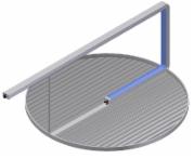 Sekundärreflektors am Receiver zusätzlich erhöht werden. Der Fresnelkollektor sitzt auf einem Drehgestell. Die Drehvorrichtung ist mit der Drehanlage des Parabolrinnenkollektors bautechnisch gleich.